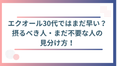 エクオールを始めるのは、30代ではまだ早い?と悩んでいる方は少なくありません。将来の更年期対策として今から始めるべきか、それともまだ必要ないのか迷ってしまいますよね。この記事では、30代に「まだ早い」と言われる理由を整理し、自分に必要かどう...